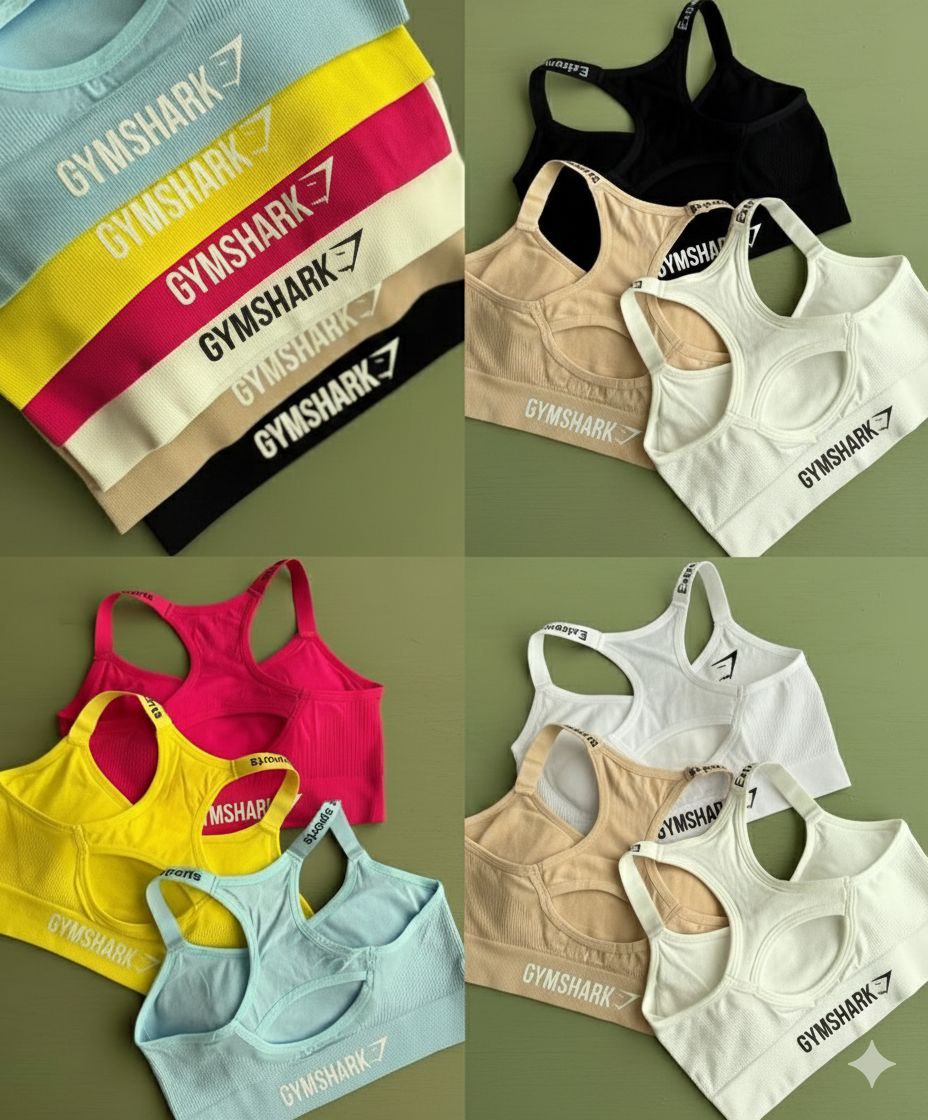 نیم‌تنه کبریتی ورزشی زنانه و دخترانه جیم شارک | پشت قهرمانی با پد متحرک | بند ثابت و کش سرشانه طرحدار | فری‌سایز کد ۸۰۴۹