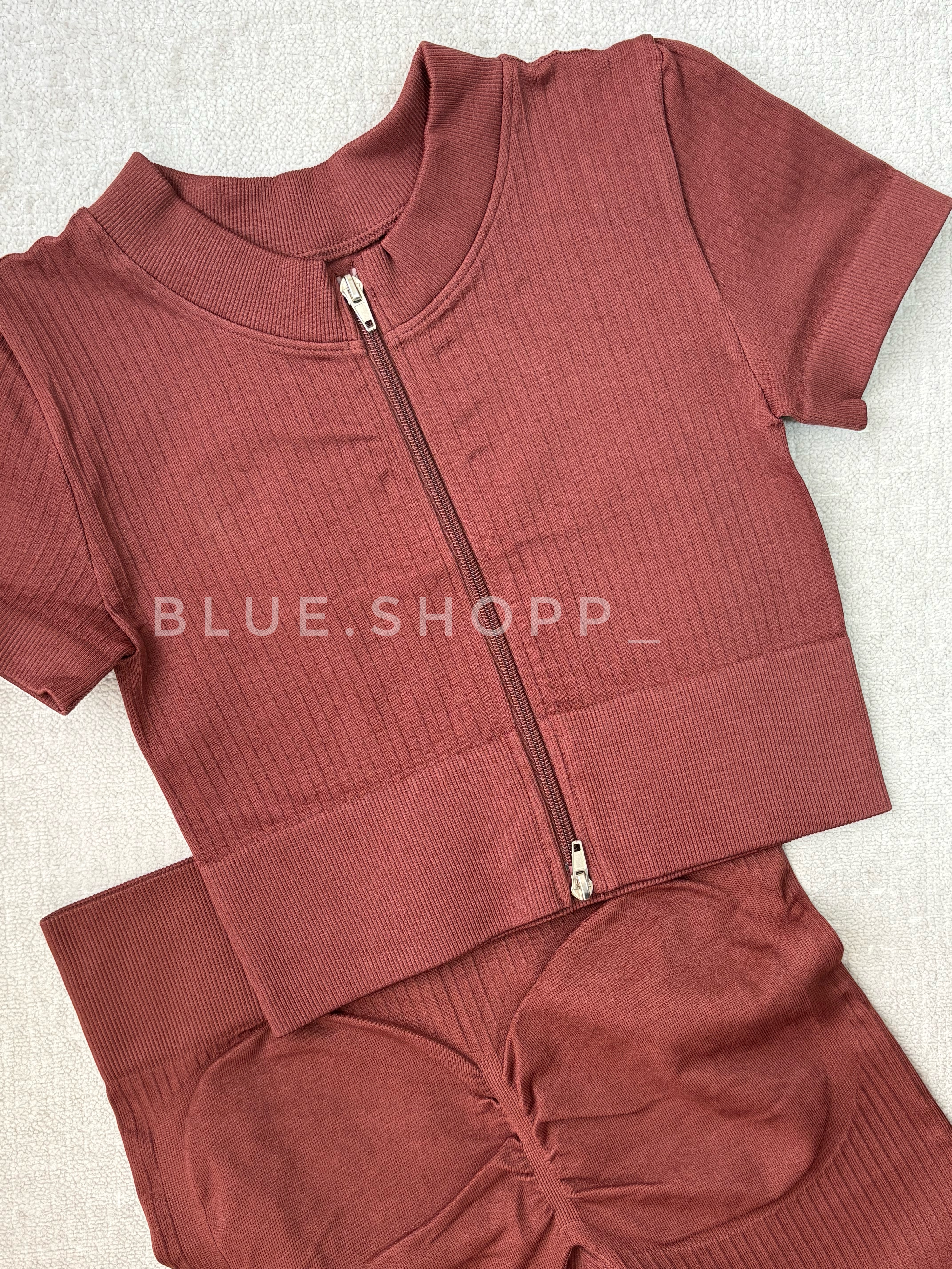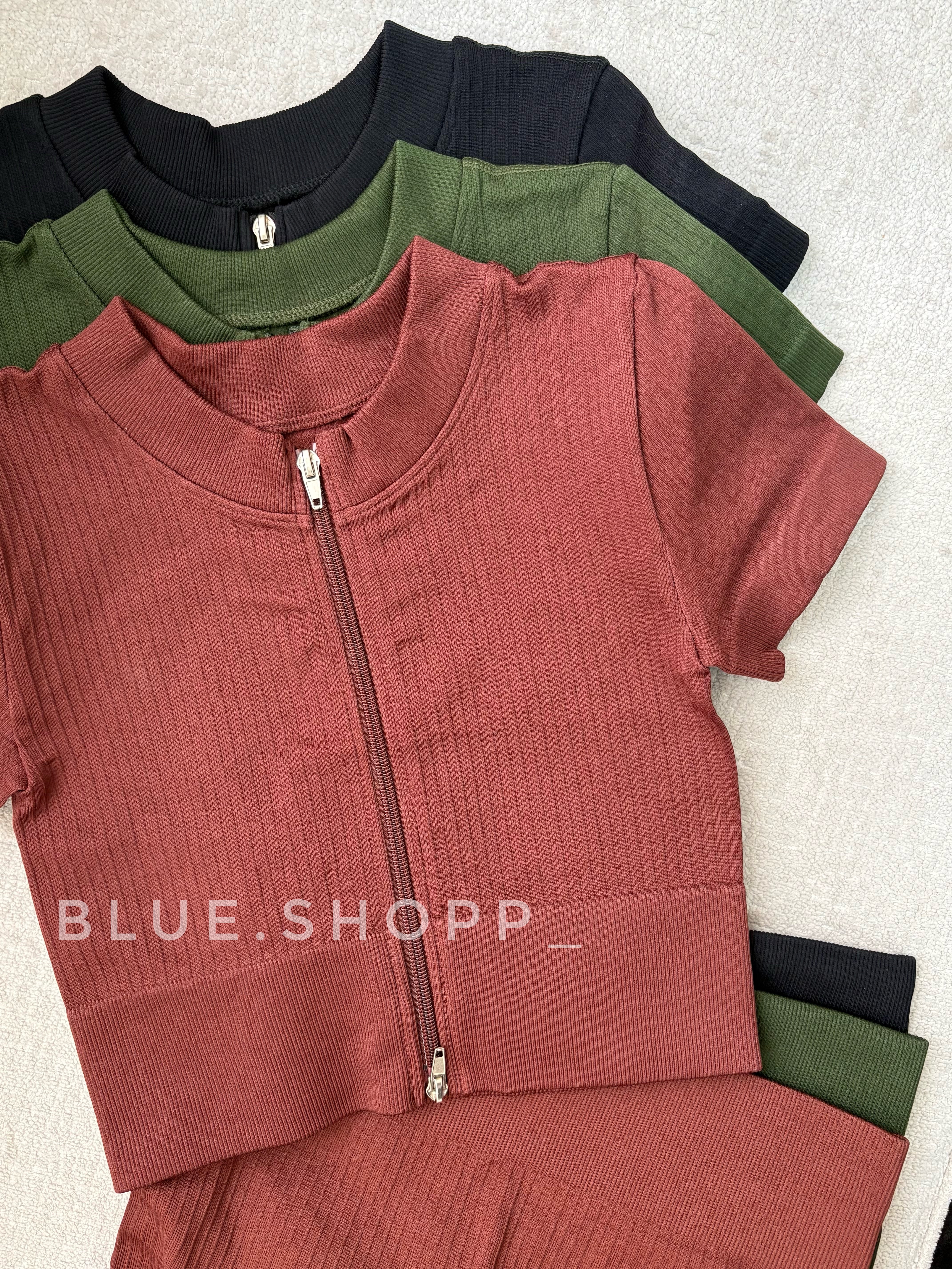 کراپ این ست دارای آستین کوتاه و زیپ جلویی است که علاوهبر زیبایی، پوشیدن آن را راحتتر کرده و استایل مدرنتری ایجاد میکند.