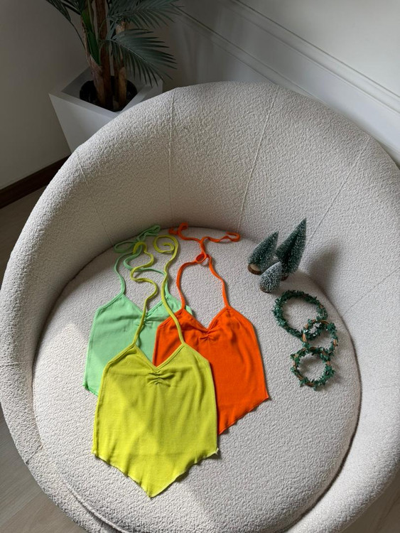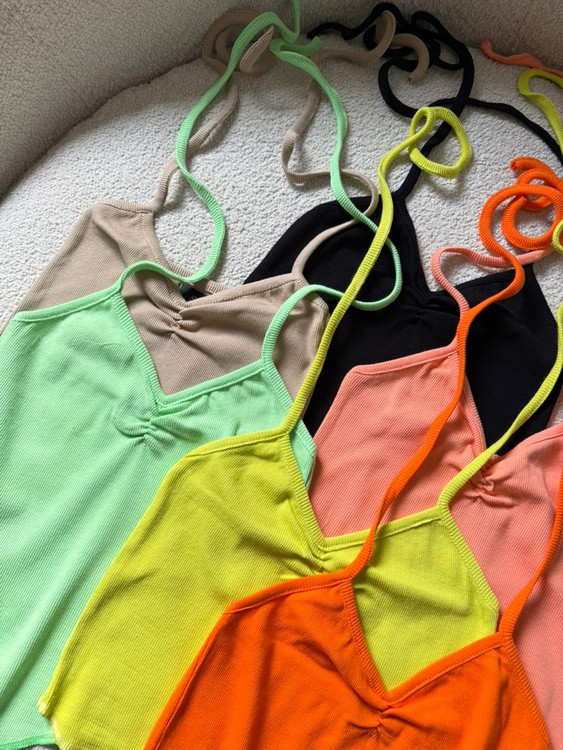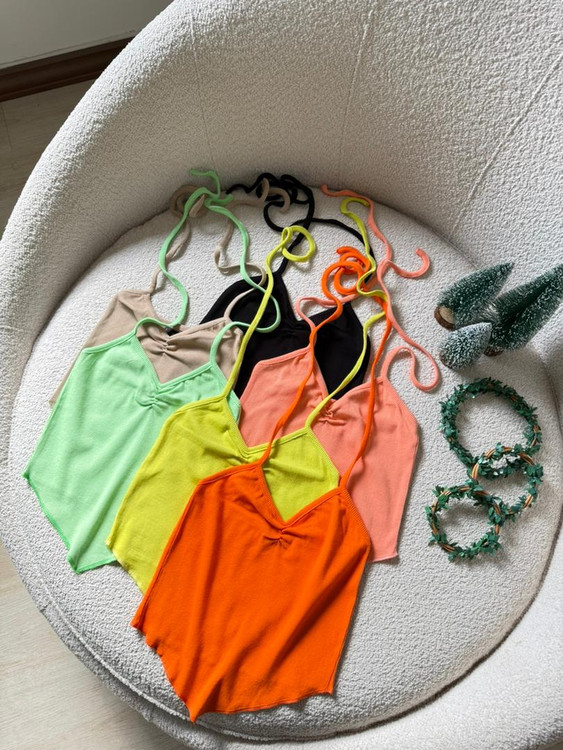 بند سرشانه به صورت گرهی ودور گردن به صورت دلخواه واندازه مدنظر گره میخورد.