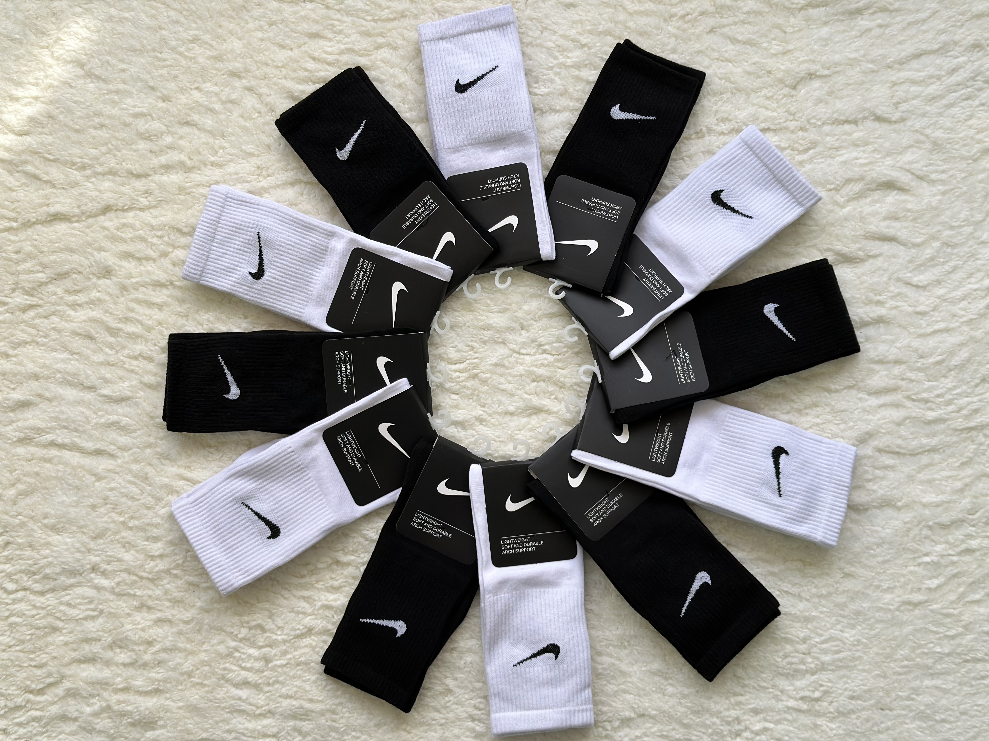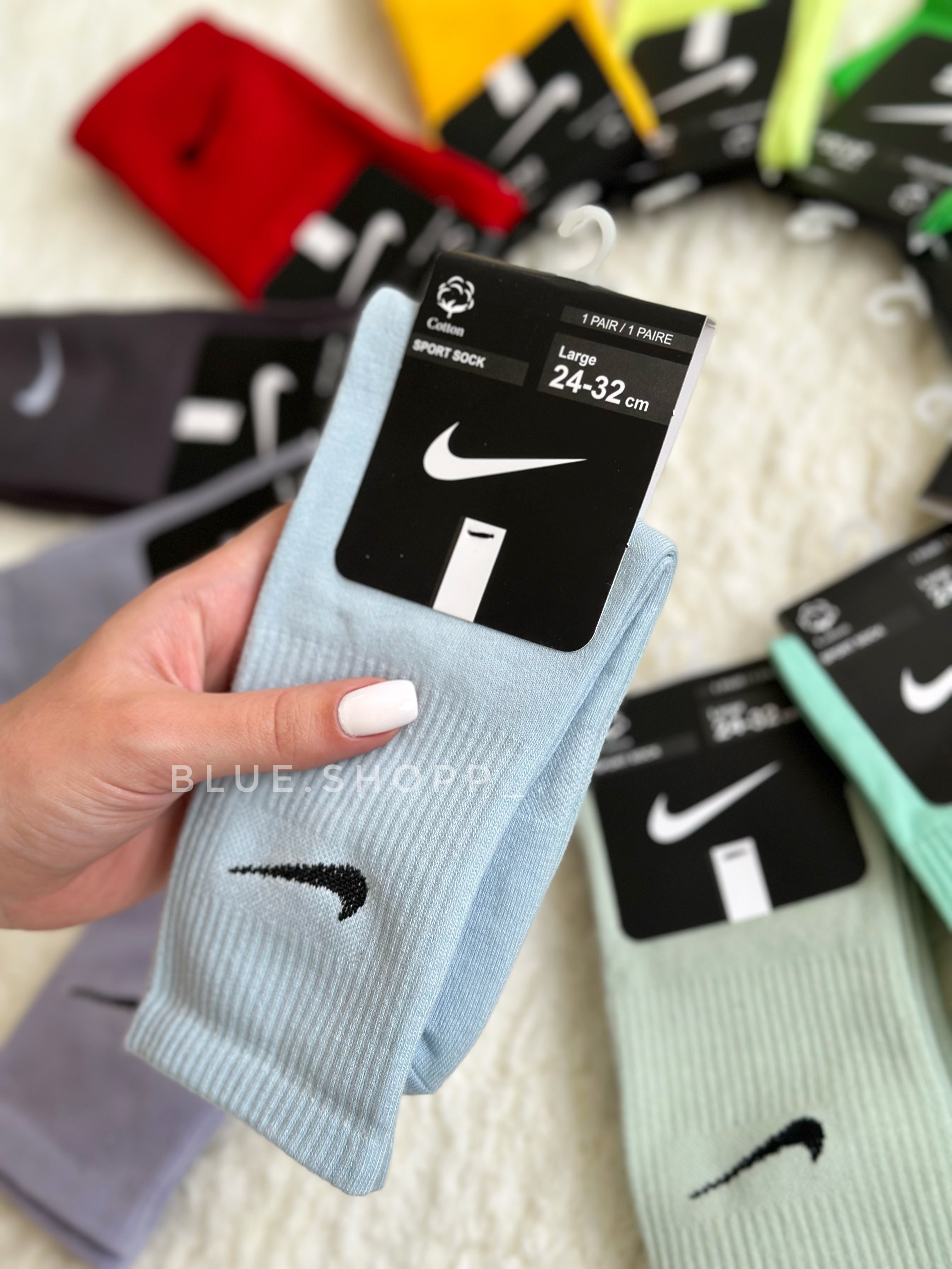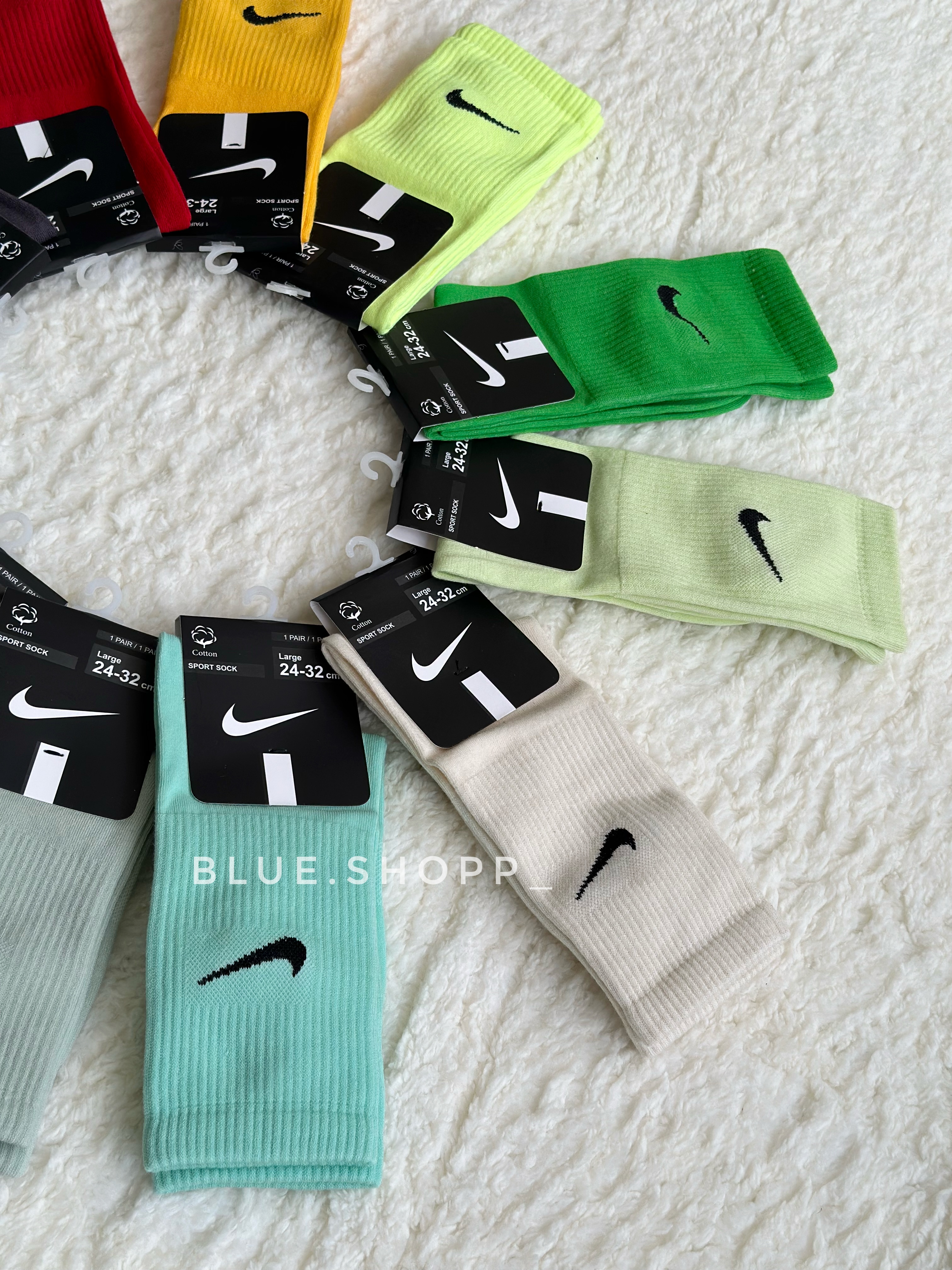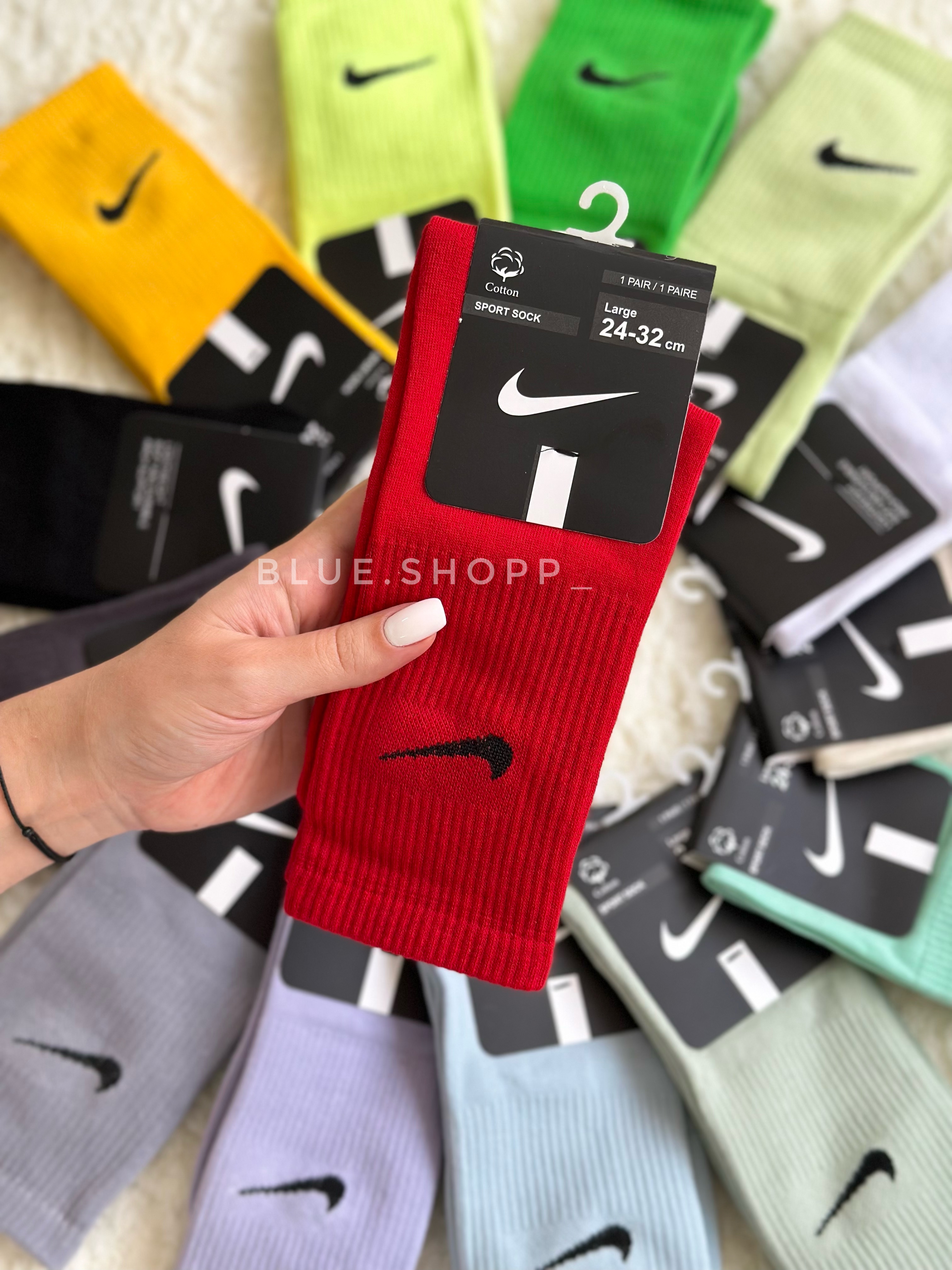 جوراب ساق بلند رنگی نایک بارنگبندی خاص و عالی مناسب استفاده روز مره وباشگاه است.جنس جوراب نخ پنبه وقابل مقایسه با نمونه های نخ هندی داخل بازار نیست.کیفیت عالی ومناسب آقایان و بانوان میباشد.👌🏼